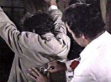 Schnitt: Ein sehr merkwürdiger Szenenübergang zeigt sich, als Columbo die Techniker befragen will. Er wendet sich einem von ihnen, der auf einem Lkw steht, zu und stellt sich kurz vor. Dann ist Columbo plötzlich ganz woanders und unterhält sich mit Sid Daley. Was soll das?